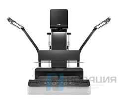 Специальная балансировка панелей компенсирует толщину корешка книг толщиной до 15 сантиметров, позволяя качественно сканировать как листовые, так и твёрдые страницы под разными углами наклона.