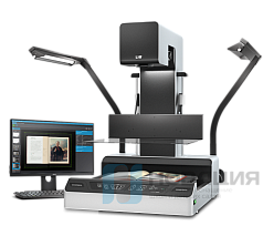 Комплект оборудования включает съёмные плоского и V-образного типа прижимные стёкла, позволяющие быстро менять режимы сканирования и обеспечивать удобную обработку любых переплетённых документов вплоть до формата A2+.