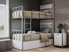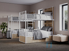 Изготовленная из надежного металлического каркаса, эта модель отличается прочностью и долговечностью, выдерживает ежедневную эксплуатацию. Удобная лестница обеспечивает легкий подъем на верхний ярус.