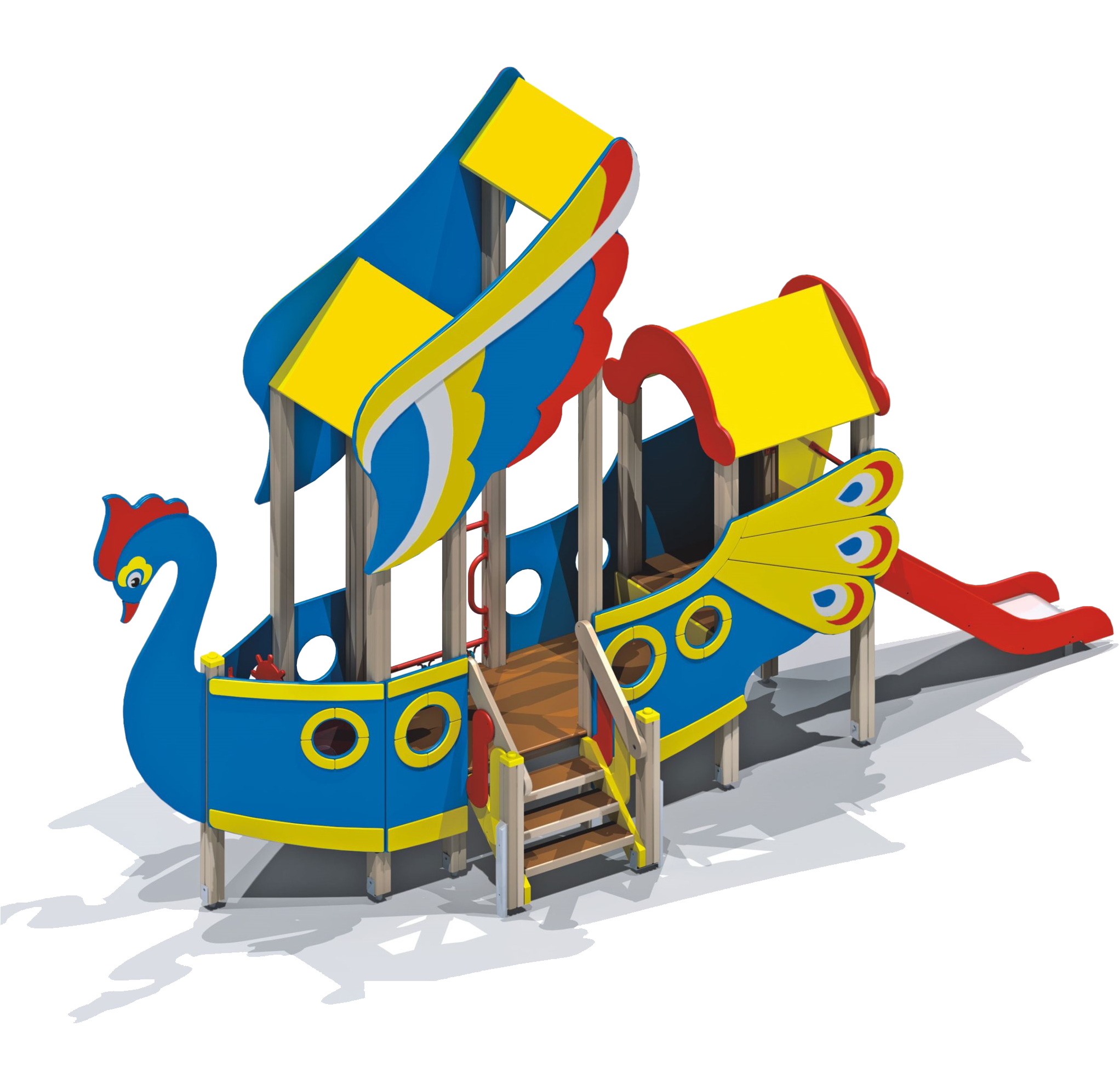 Уличный комплекс в виде летучего корабля устанавливается на территории ДОУ или школы.