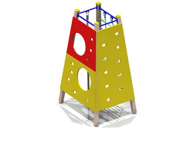 Элементы составляют композицию в виде усеченной пирамиды. Столбы устанавливаются под наклоном к центру, в верхней части соединяются балками. Канат, сетка и альпинистские стенки позволяют выполнять упражнения на скорость, гибкость и выносливость. Детали устойчивы к воздействию осадков.