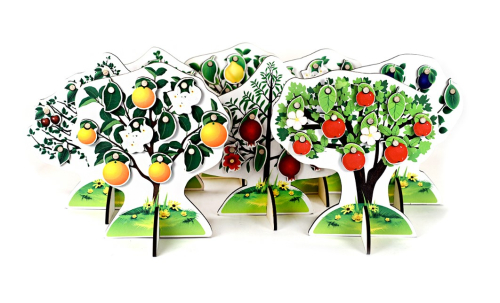 В комплекте 8 фигурок деревьев: яблоня, гранат, груша, апельсин, лимон, вишня, слива, персик. Каждое деревце оснащается листочками, плодами, цветами (по 5 шт.)