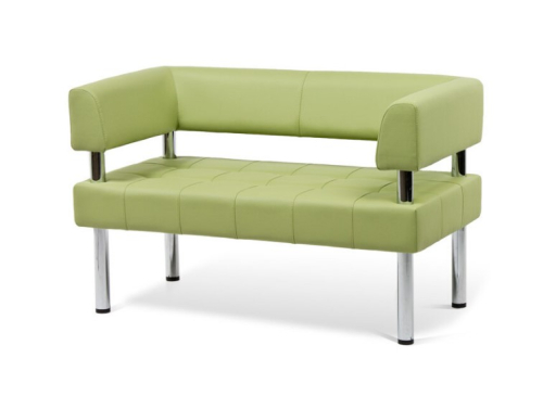 Двухместный диван с прямоугольным сиденьем оснащен спинкой и 2-мя подлокотниками. Поверхность сиденья, подлокотников и спинки легко очищается влажной тканью.