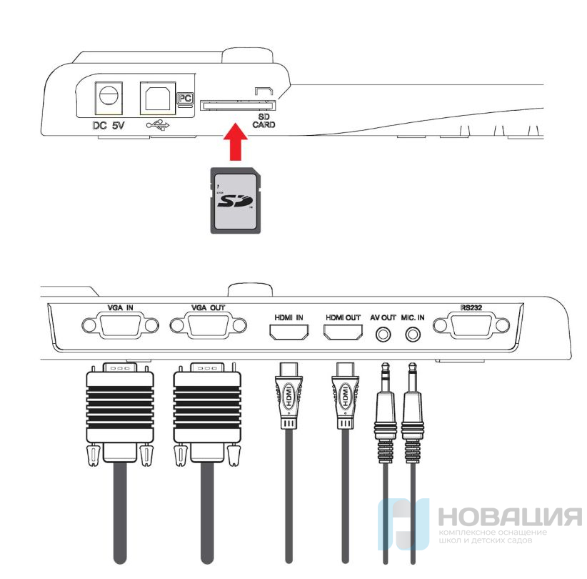 - Кабели USB, AV, VGA и HDMI,