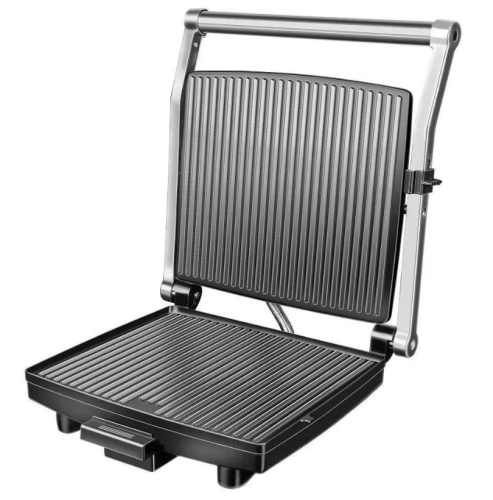 Подходит для приготовления вторых блюд и десертов. Электрогриль оснащена световым индикатором. С помощью регулятора температуры можно устанавливать подходящий режим для определенного блюда. Антипригарное покрытие позволяет готовить без использования масла и сохранить натуральный и естественный вкус продуктов.