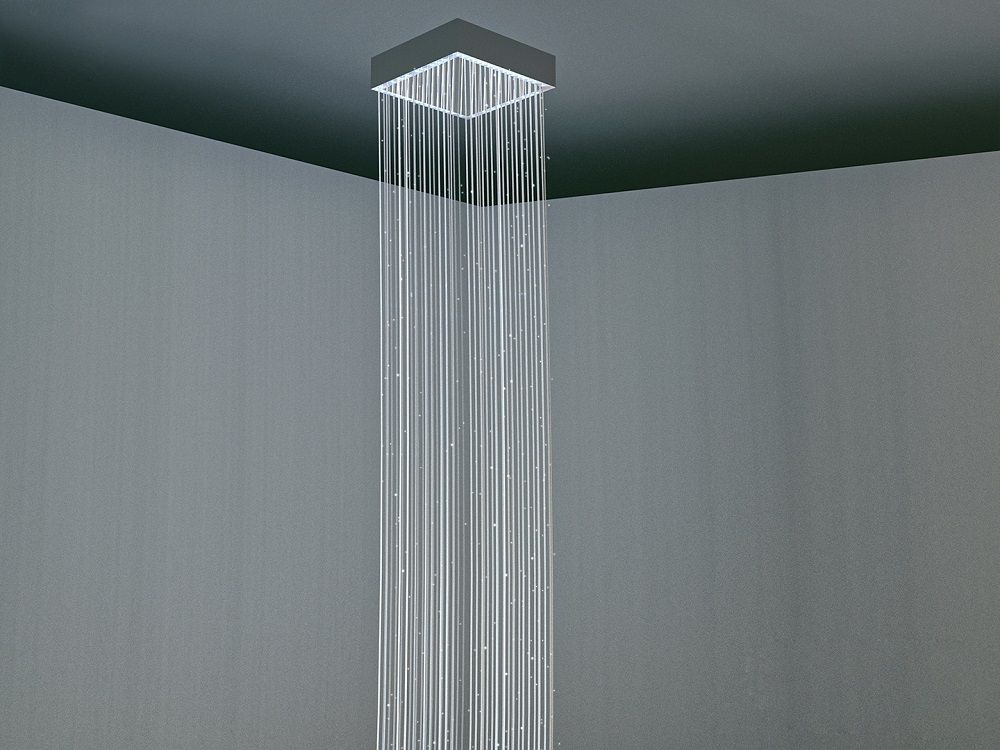 Оборудование для соляных и сенсорных комнат помогает расслабиться и развить тактильные ощущения. Прямоугольный корпус закрепляется на потолке. Волокна вокруг акрилового зеркала имитируют струи воды.