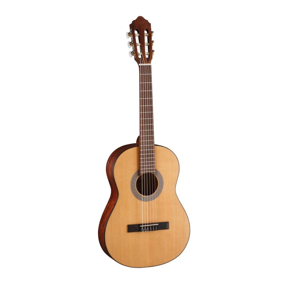 Гитара подойдет как для новичков и любителей, так и для более опытных музыкантов. Верхняя дека изготовленная из ели обеспечивает резонансное звучание инструмента.