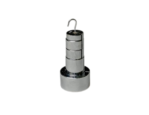 Наборный груз используется для демонстрации опытов по механике. Стальные гири цилиндрической формы закрепляются на подвесе.