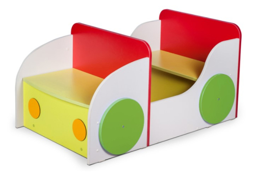 Конструкция имеет скругленные углы и скрытые крепления, поэтому не стоит беспокоиться за безопасность ребенка во время игры. Изделие имеет дополнительное место для хранения игрушек и детских принадлежностей (спереди оснащено открывающимся капотом).