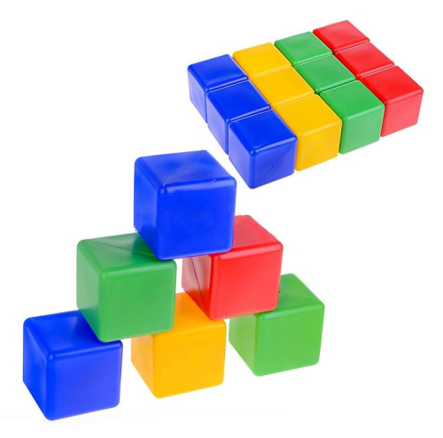 В наборе 12 разноцветных кубиков со сглаженными углами. Построение различных фигур способствует развитию мелкой моторики и координации движений. Также набор может использоваться для изучения цветов.