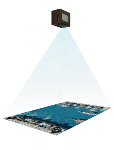 Проецирует изображение площадью до 7,9 м², что позволяет играть нескольким детям сразу. Проектор (в одном корпусе с компьютером) крепится к потолку при помощи кронштейна. Управление осуществляется с помощью планшета.