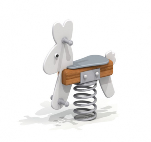 Детская качалка на одной пружине оснащена фигурным корпусом в виде зайчика. Стилизованная панель с 2-мя поручнями и 2-мя подставками для ног оборудована сиденьем без спинки. Углы конструкции сглажены. Крепеж оцинкован.