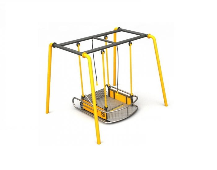 Для самостоятельного раскачивания предусмотрены специальные канаты. Есть откидной пандус. Бортики не дают остановить движение с помощью  ног, что позволяет избежать травмы. Подвесные элементы закрепляются на каркасе с 4-мя удлиненными стойками, которые вкапываются в грунт и бетонируются на 500 мм.