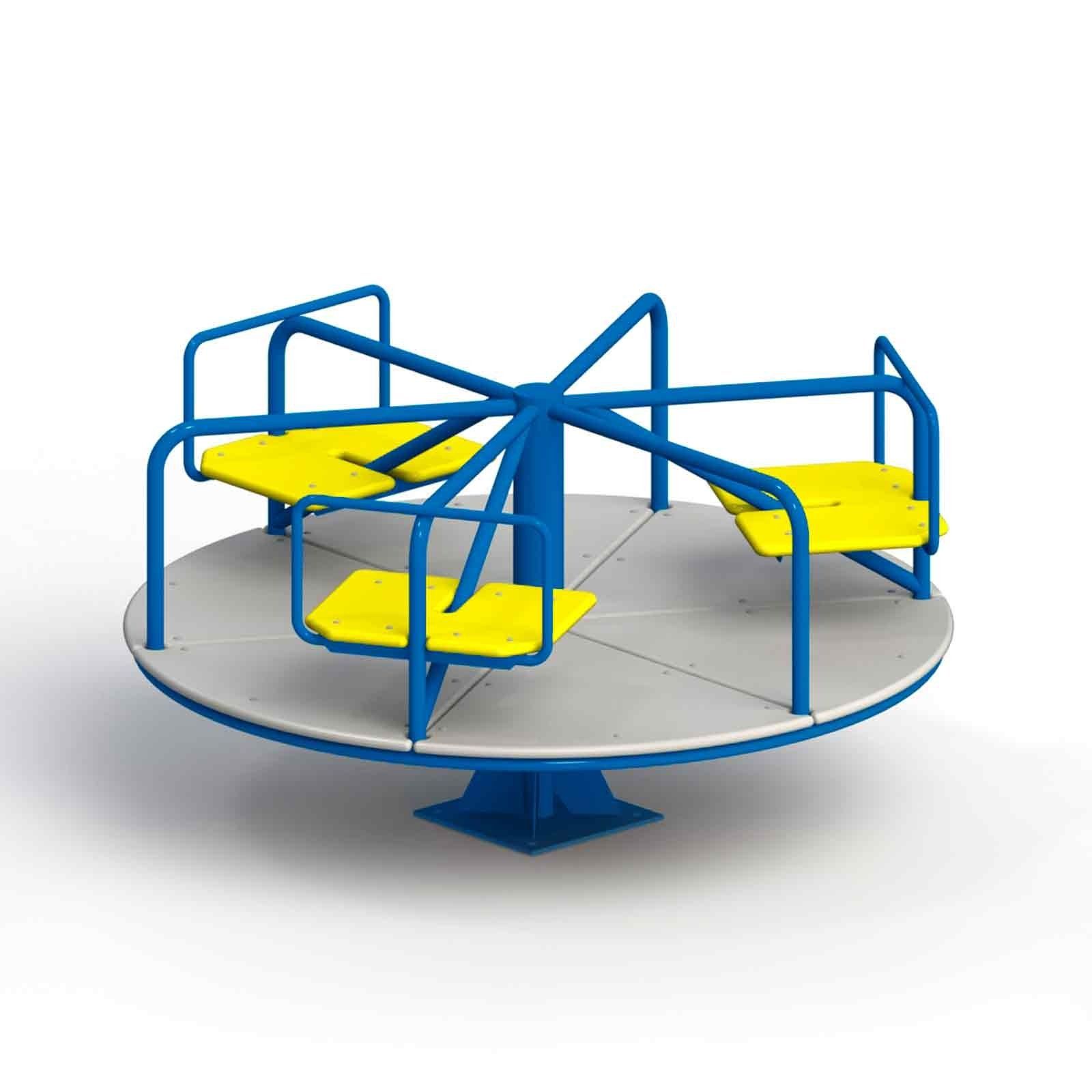 Уличное оборудование размещается на территории ДОУ или школы. Карусель, рассчитанная на 6 человек, используется для тренировки вестибулярного аппарата.