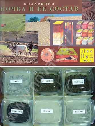 Коллекция включает образцы чернозёмной, подзолистой, и торфо-перегнойной почвы, а также её составляющих - глины и песка.