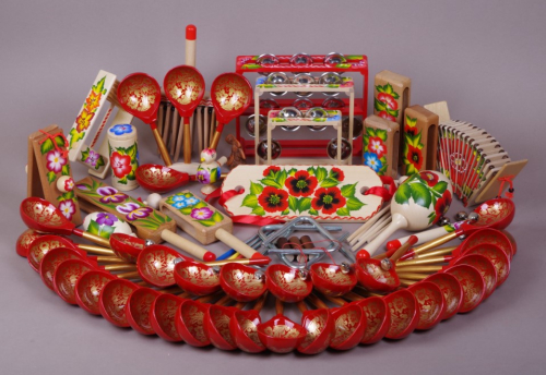 Народные музыкальные инструменты с художественной росписью предназначены для дошкольников и детей младшего школьного возраста.