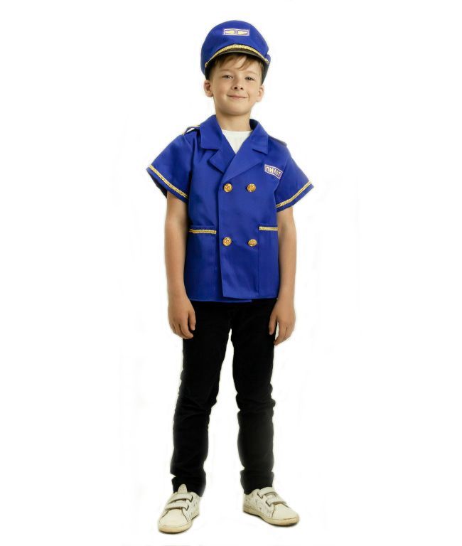 Костюм состоит из куртки с карманами и фуражки. Куртка застегивается на пуговицы.