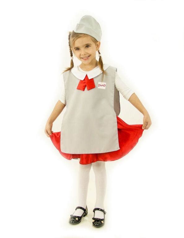 Костюм состоит из пилотки и накидки с воротником и галстуком, которая застегивается на липучку сбоку.