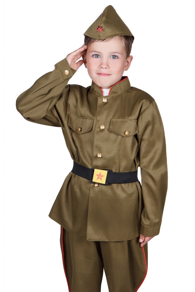 Костюм состоит из гимнастерки на пуговицах с манжетами и нагрудными клапанами, брюк-галифе с красной окантовкой по бокам, пилотки с красной звездой и ремня.