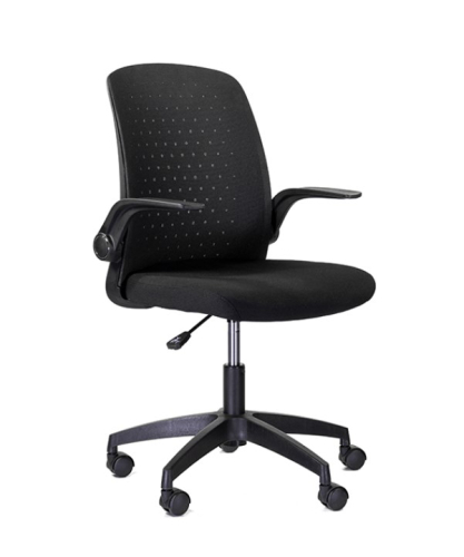 Цвет: каркас и подлокотники из черного пластика, обивка спинки и сиденья черного цвета.