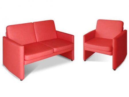 Кресло со спинкой и подлокотниками размещается на 4-х опорах из пластика. Практичный материал обивки выдерживает влажную уборку.
