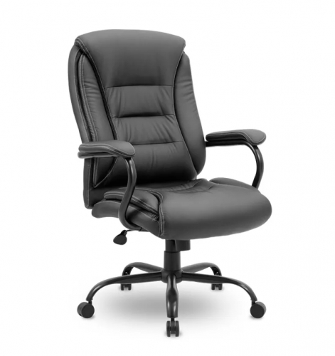 Кресло руководителя с широкой эргономичной спинкой и поясничной поддержкой. Усиление каркаса выполнено за счет металлической рамы, переходящей из-под сидения за спинку кресла. Кресло имеет повышенную нагрузку до 180 кг.