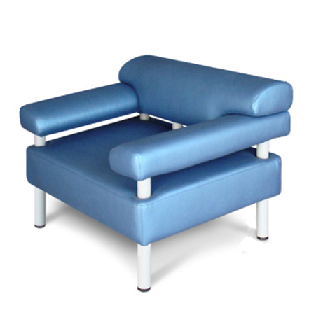 Кресло с широким сиденьем оснащено спинкой и подлокотниками. Размещается на 4-х круглых металлических опорах. Не требует специального ухода.