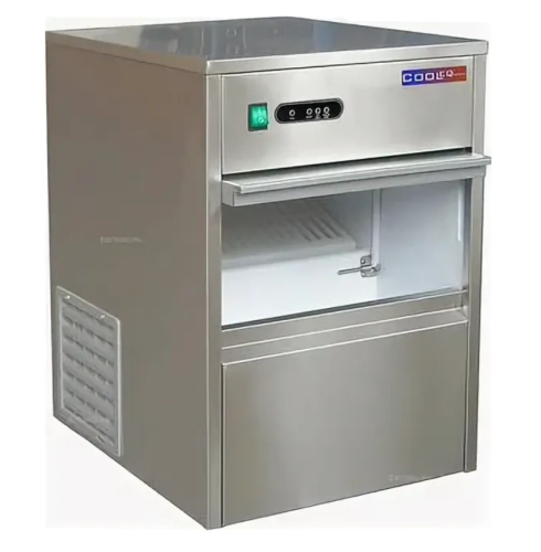Предназначен для выработки мелкого льда. Оснащен регулирующимися ножками и бункером для хранения готового льда. Требует подключения к канализационной трубе и подведен к водоводу.