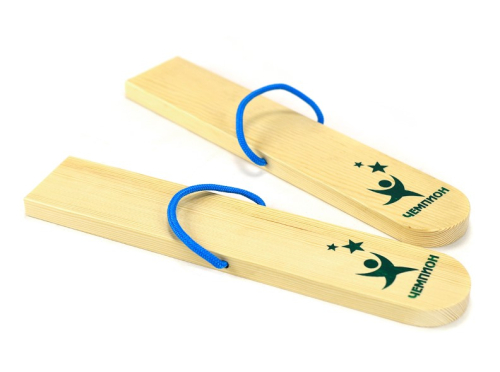 Лыжи-шагайки состоят из деревянной основы и крепления для ног. Тренируют ловкость и координацию движений.
