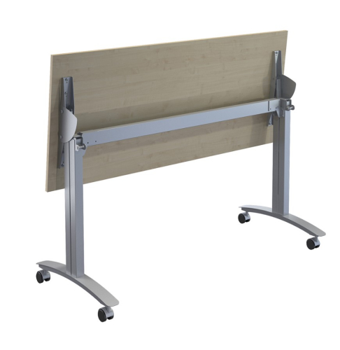 Парта может складываться в вертикальное положение и фиксироваться, после чего ее возможно передвинуть на колесах и освободить помещение. Готовые столы без труда перемещаются благодаря высококачественным немецким колесным опорам D 50 мм. Благодаря мягкой шине из резины колесо не оставляет следов на твердом покрытии и не шумит. Все 4 колеса оснащены стопорами для фиксации стола в рабочем положении.