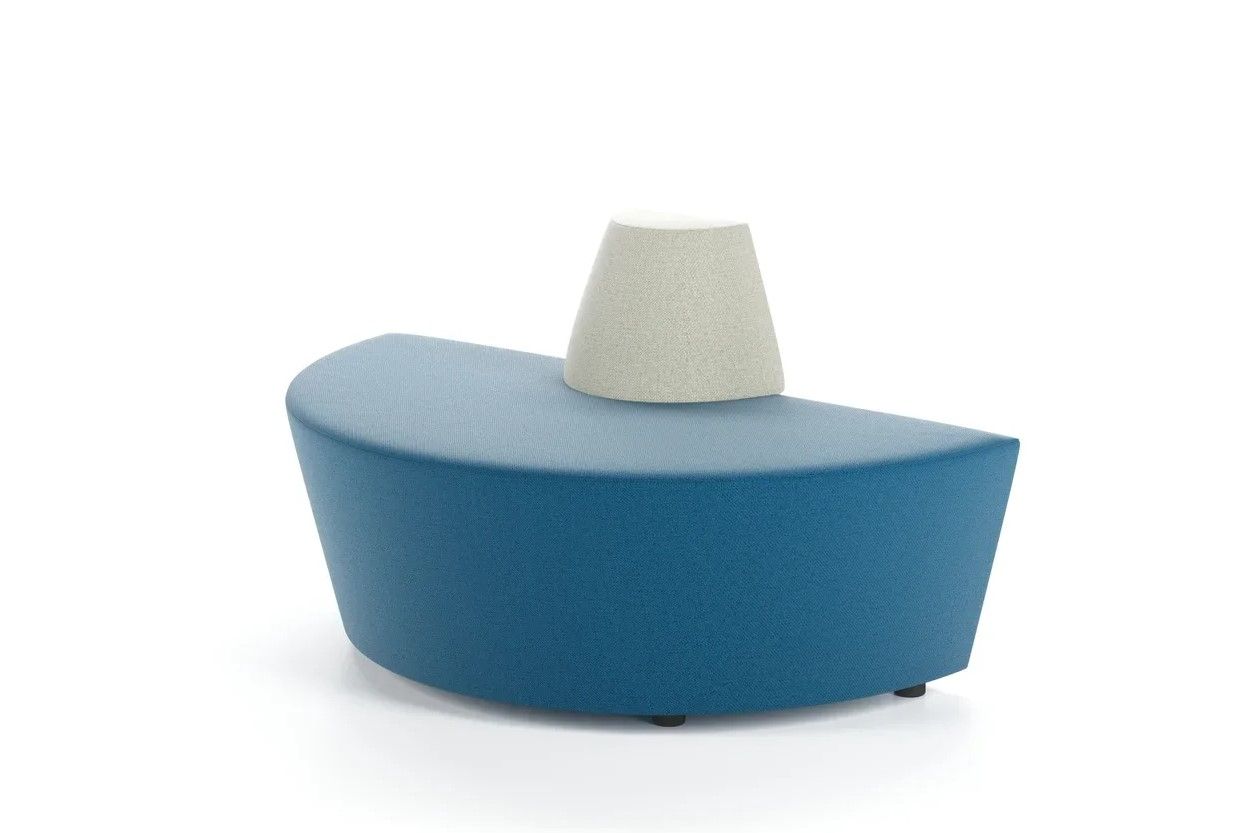 Диван для 2-3 человек состоит из верхнего и нижнего элементов в форме сектора. Обивка из экокожи прошла испытания, выдерживает 50000 циклов истирания. Мебель сочетается с другими моделями линейки, компонуется в произвольные композиции без острых углов.