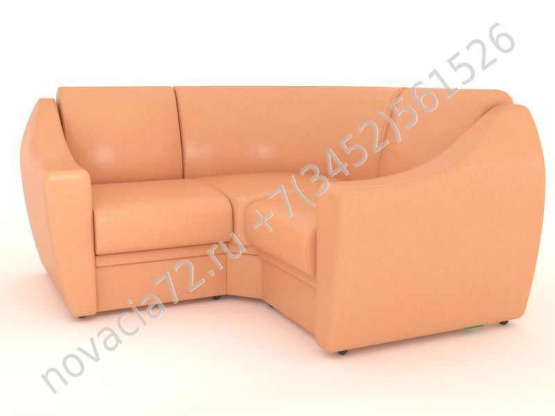 Модульный угловой диван оснащен подлокотниками и трехсекционной спинкой. Материал обивки очищается от загрязнений во время влажной уборки.