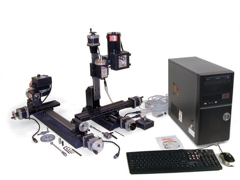 • Комплект А: тиски, комплект цанг (3 шт.), сверлильный патрон для конуса Морзе 1, комплект центровочных сверл (3 шт.), инструмент с одним лезвием для обработки плоских поверхностей, 6 двусторонних концевых фрез и державка, набор крепежа для заготовок, шестигранник с Т-ручкой (4 мм).