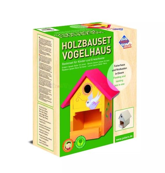 Все элементы (9 шт) выполнены из натурального дерева и имеют отверстия для гвоздей (молоток и гвозди входят в комплект). Кормушка легко очищается.