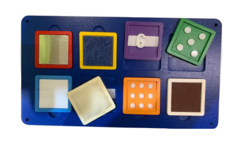 Тренажер для развития чувствительности применяется в детском саду. Набор включает в себя гладкие и шероховатые, пушистые и грубые материалы, при помощи которых определяется уровень развития тактильных ощущений у дошкольников. Изделие подходит для детей с аутизмом, психологическими проблемами.