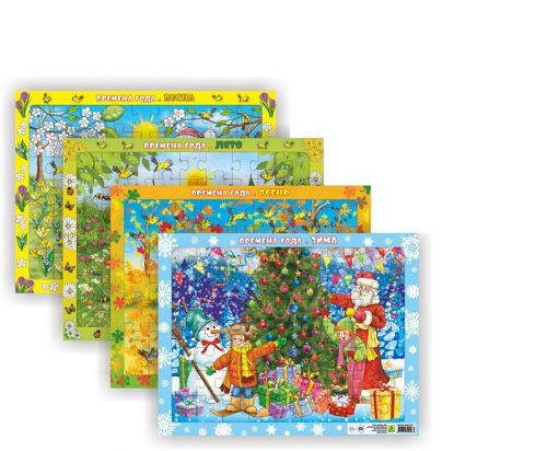 В наборе 4 тематических пазла. Каждый пазл состоит из 63 деталей. Способствует развитию мелкой моторики, внимания и памяти.