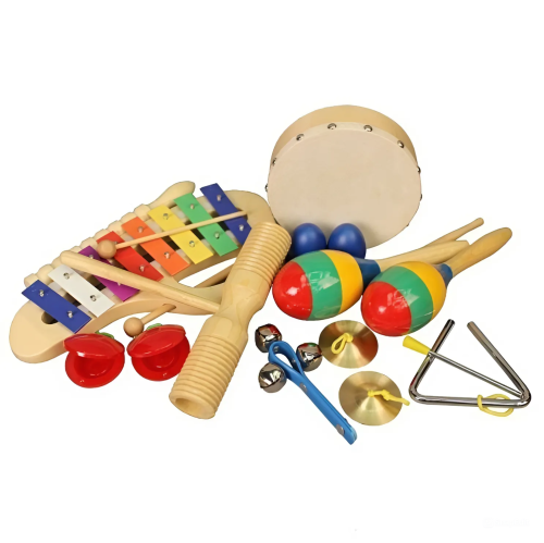 Набор перкуссии поможет развить чувство ритма, координацию и музыкальные навыки, а также подарит массу радостных моментов и веселья.
