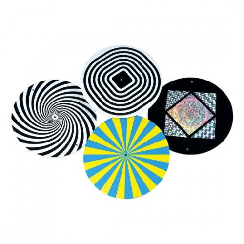 Различные рисунки, изображенные на каждом диске, создают захватывающие оптические эффекты и делают занятия еще более интересными.