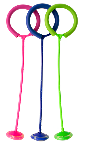 Нейротренажер оснащается кольцом, которое надевается на ногу. Дошкольник совершает вращательные движения одной ногой и переступает через скакалку второй.