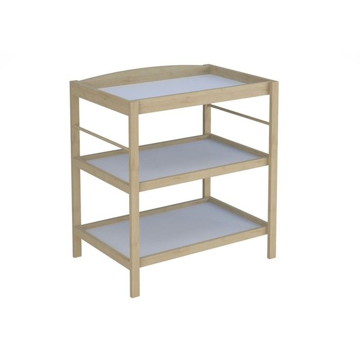 Столик оснащен 3-мя ярусами. Верхняя площадка используется при пеленании ребенка, на нижних 2-х полках можно хранить пеленки и косметические средства. Конструкция на 4-х ножках устойчива, верхний ярус оснащается бортиками. Между 2-ым и 3-им ярусом боковые перекладины.