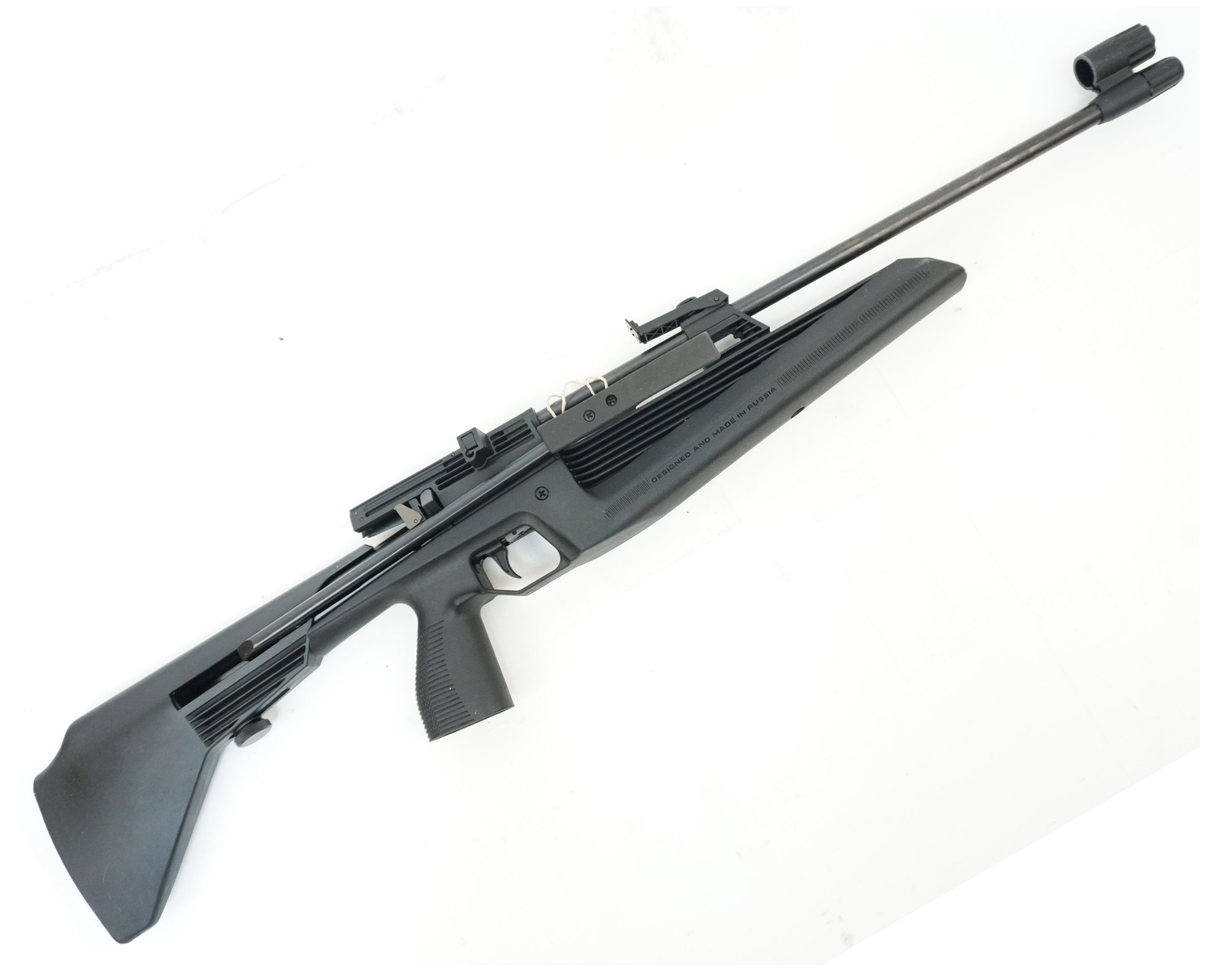 Магазин рассчитан на 5 пуль для пневматики (4,5 мм). Взведение осуществляется боковым рычагом. Скорость выстрела 150 м/с. Ствол нарезной.