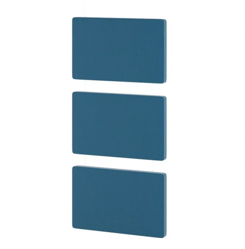 Шумопоглощающая перегородка состоит из 3-х секций, расположенных друг над другом. Элемент зонирования сочетается с мебелью ToForm. Углы каждой секции закруглены.