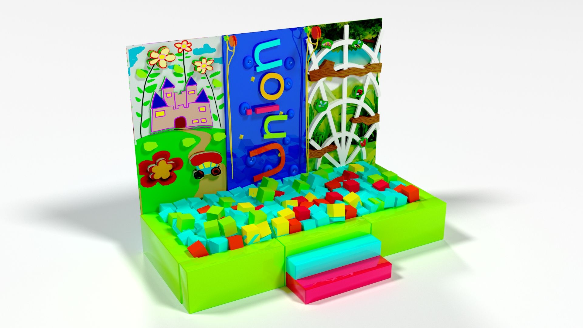 В комплекте: сухой бассейн, кубики, скалодром, лестница.