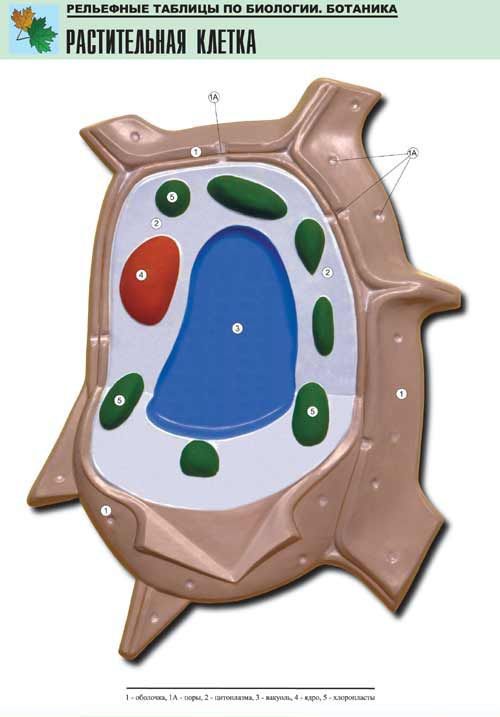 На белом фоне представлено строение растительной клетки. Элементы схемы обозначаются разными цветами, сопровождаются поясняющей информацией. Плакат для уроков биологии (ботаники) покрыт матовой пленкой с объемным эффектом, исключающим блики. Благодаря полноцветной печати таблица выглядит рельефной.