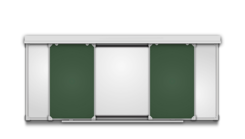 Включает 4-е поверхности для письма мелом или маркерами, две из которых двигаются по рельсам, скрывая центральную интерактивную доску. Боковые доски жестко закреплены на стенах, а верхние мобильны и легко сдвигаются.