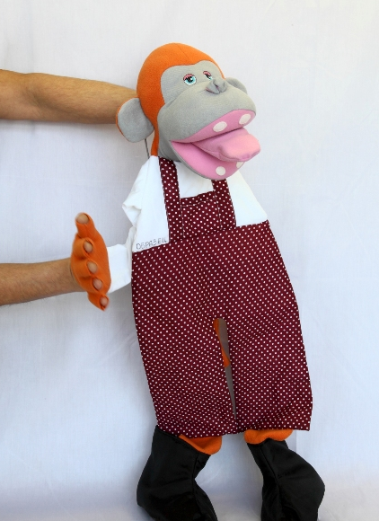 Органы артикуляции обезьянки (язык, челюсти) заметно выделяются, поэтому педагог на примере сказочного персонажа показывает, как правильно выполнять упражнения.