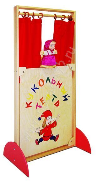 Ширма с окном и шторкой устанавливается на ножки. Может использоваться с пальчиковыми и перчаточными куклами.