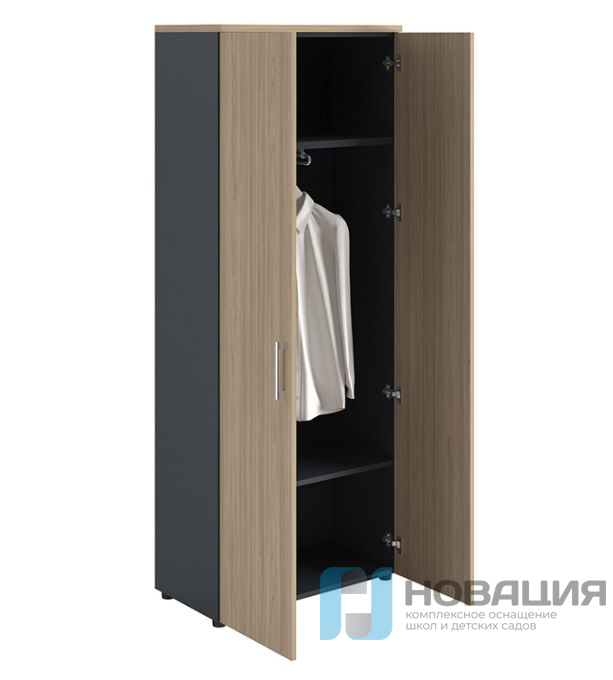 Гардеробный шкаф закрытого типа с повышенной прочностью конструкции благодаря корпусу и задней стенке, изготовленным из ЛДСП толщиной 16 мм, зафиксированным эксцентриковыми стяжками.