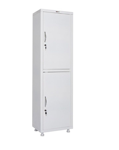Металлический шкаф подходит для хранения медикаментов, инструментов, документов в медицинском или лабораторном кабинете.