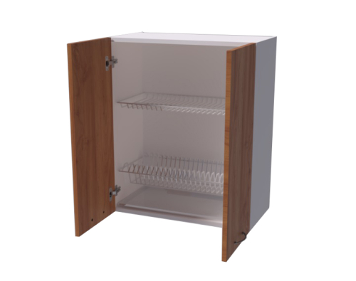 Шкаф отличается минималистичным дизайном и подойдет к любому помещению. Оснащен 2-мя дверцами и ручками-скобами. Внутри размещается двухуровневая сушилка для посуды.